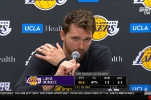 体育资讯3月26日讯 NBA常规赛,湖人137-130战胜步行者。赛后,东契奇接受了采访。