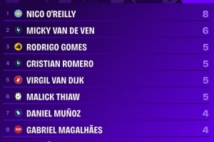 3、罗德里戈·戈麦斯、罗梅罗、范戴克、佳夫 5球