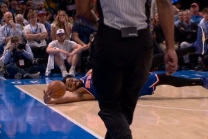 GIF-唐斯极限救球出界 尼克斯挑战成功